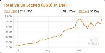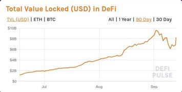 Неоднократно говорил ранее (например, в той же заметке DeFi: бег по граблям), что новомодное "доходное фермерство" будет стремительно смыто в унитаз при первых признаках разворота рынка. Не сказать, чтобы рынок уже глобально перешёл в новую фазу обвала, подобную мартовской. Но именно признаки разворота уже более чем проявились - курс того же ETH в первую неделю сентября сильно упал из-под почти 500 USD до примерно 322 USD (падение составило около 35%). И это не замедлило сказаться на "рынке" DeFi: